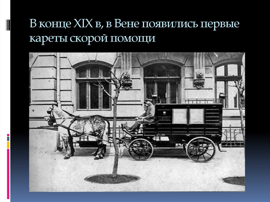 В конце XIX в, в Вене появились первыекареты скорой помощи