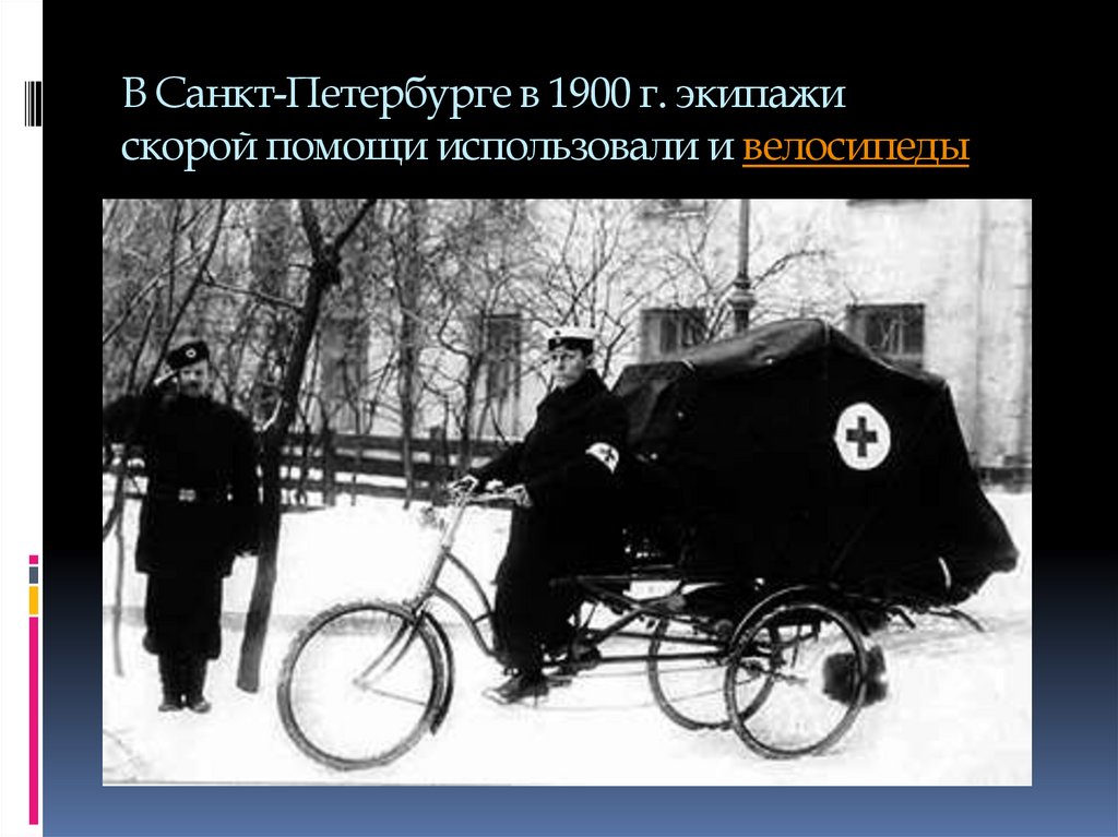 В Санкт-Петербурге в 1900 г. экипажискорой помощи использовали и велосипеды