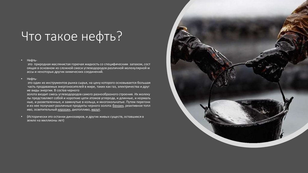 Что такое нефть?Нефтьэто природная маслянистая горючая жидкость со специфическим запахом, сост