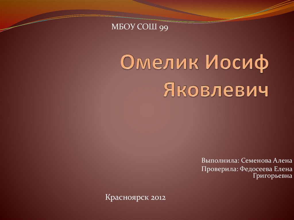 МБОУ СОШ 99Выполнила: Семенова Алена