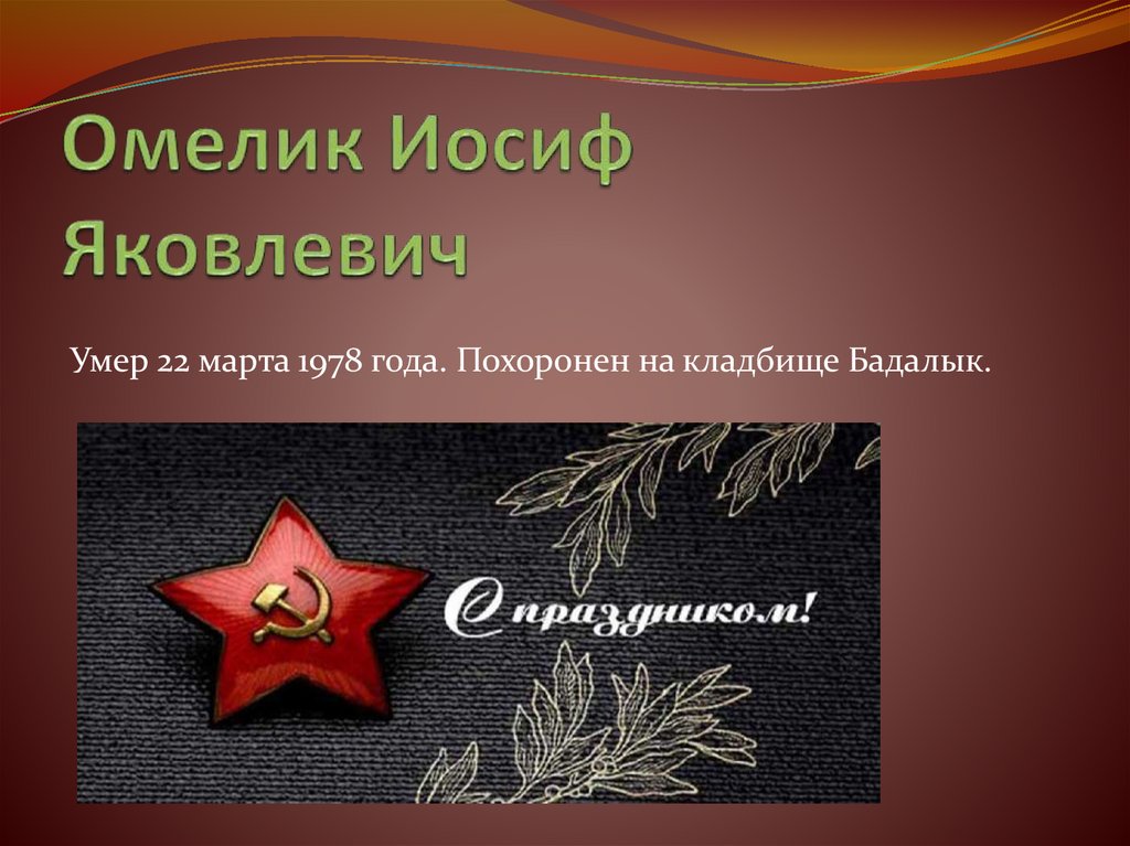 Герой Великой Отечественной войны Омелик Иосиф Яковлевич