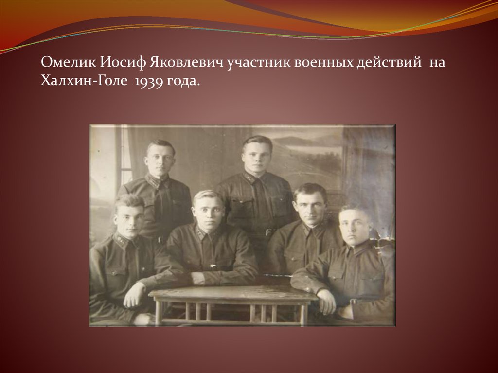 Омелик Иосиф Яковлевич участник военных действий наХалхин-Голе 1939 года.