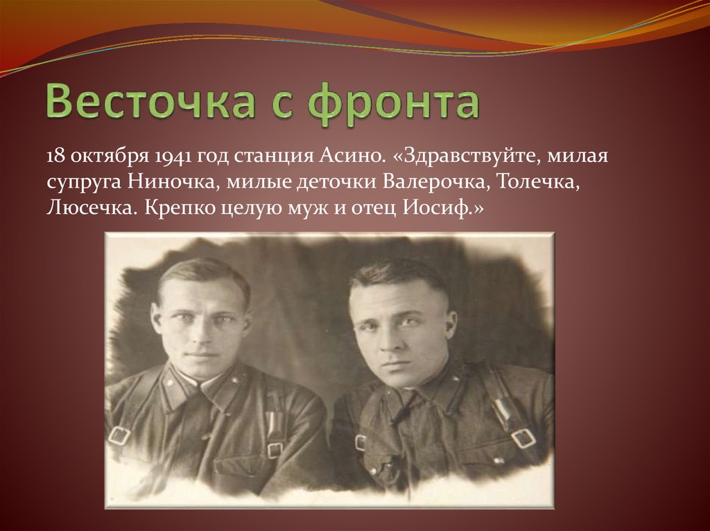18 октября 1941 год станция Асино. «Здравствуйте, милаясупруга Ниночка, милые деточки Валерочка, Толечка,