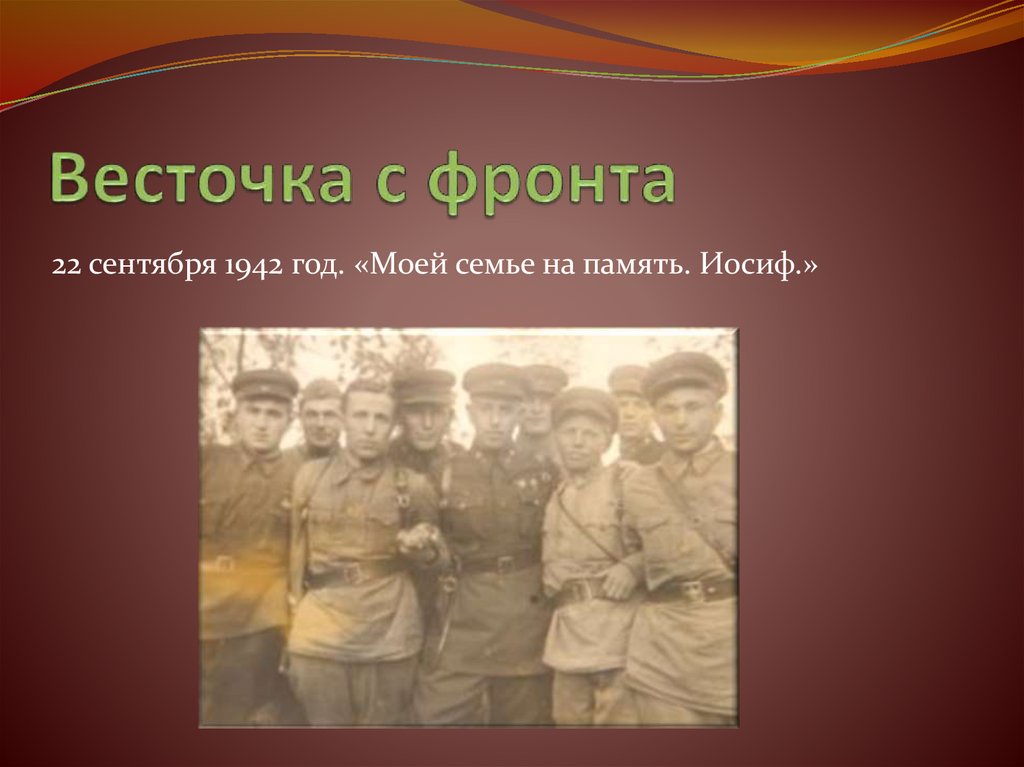 22 сентября 1942 год. «Моей семье на память. Иосиф.»8.