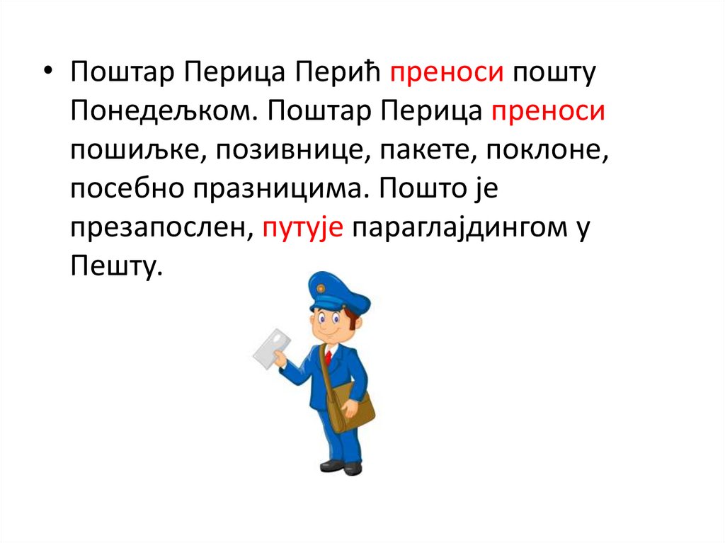 • Поштар Перица Перић преноси поштуПонедељком. Поштар Перица преноси