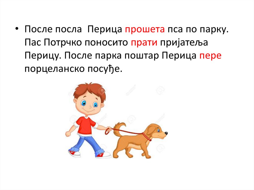 • После посла Перица прошета пса по парку.Пас Потрчко поносито прати пријатеља