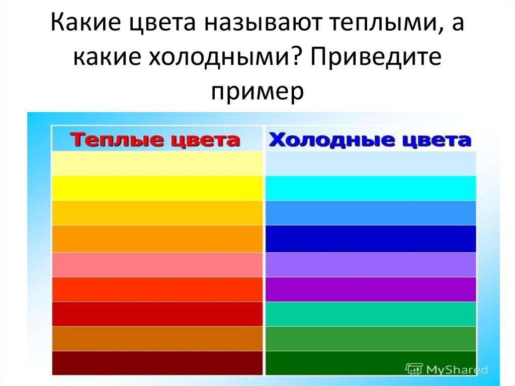 Какие цвета называют теплыми, акакие холодными? Приведите