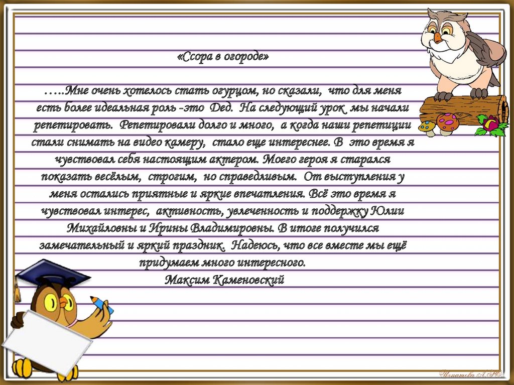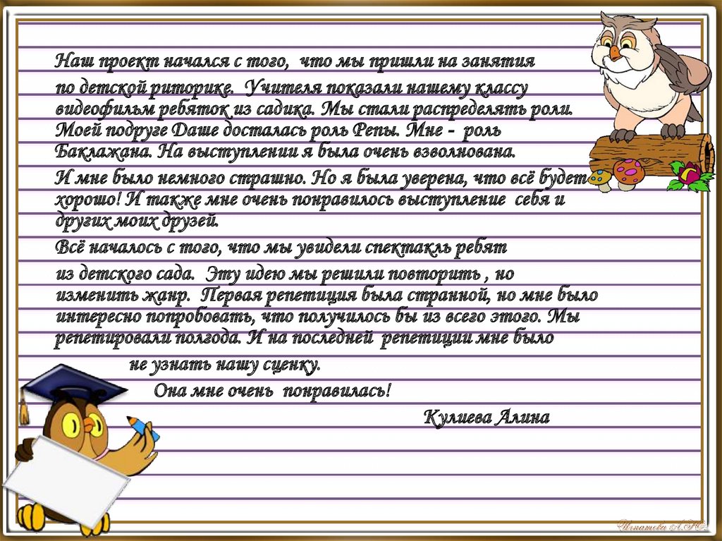 выучить чужие слова для сценки. К сожалению, я не присутствовала на