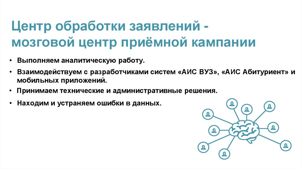 Центр обработки заявлений мозговой центр приёмной кампании• Выполняем аналитическую работу.