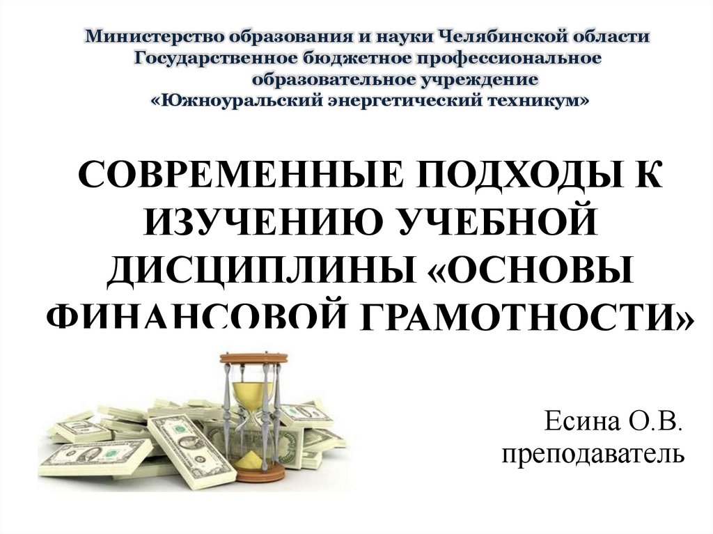 Современные подходы к изучению учебной дисциплины «Основы финансовой грамотности»