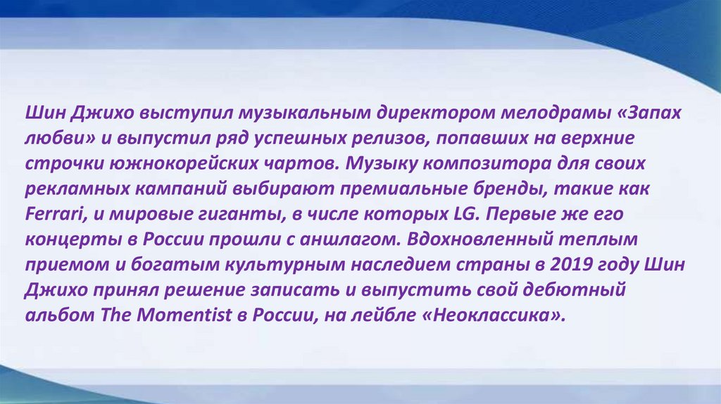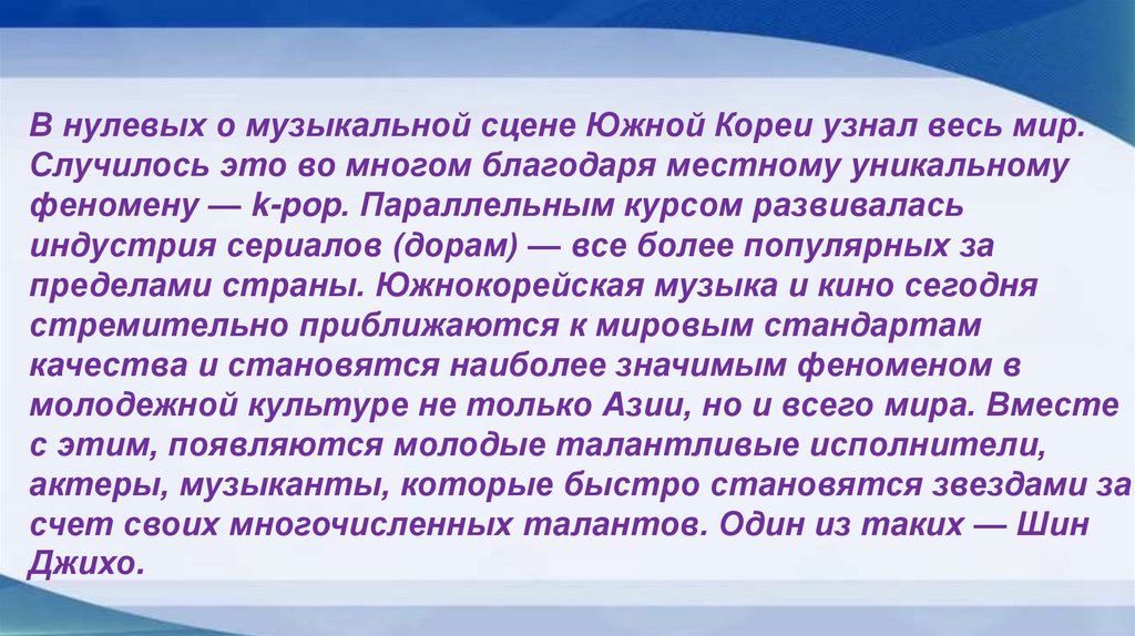 Презентация по музыке на тему:«Шин Джихо (Южная Корея)»