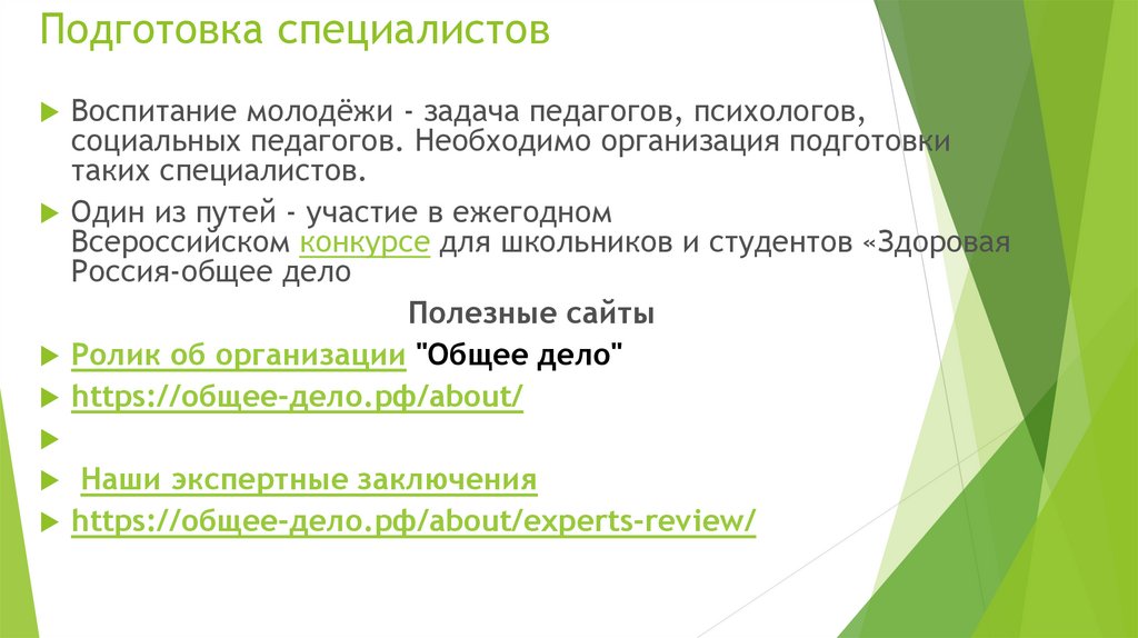 Подготовка специалистовВоспитание молодёжи - задача педагогов, психологов,