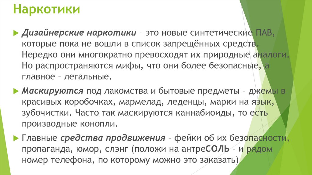 НаркотикиДизайнерские наркотики – это новые синтетические ПАВ,