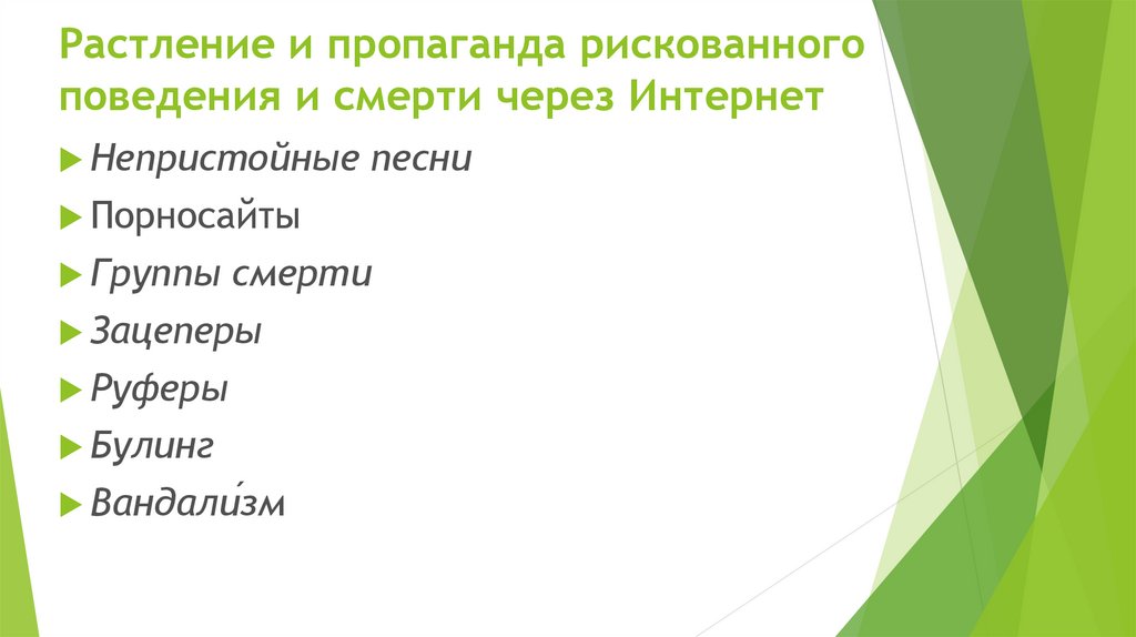 Растление и пропаганда рискованногоповедения и смерти через Интернет