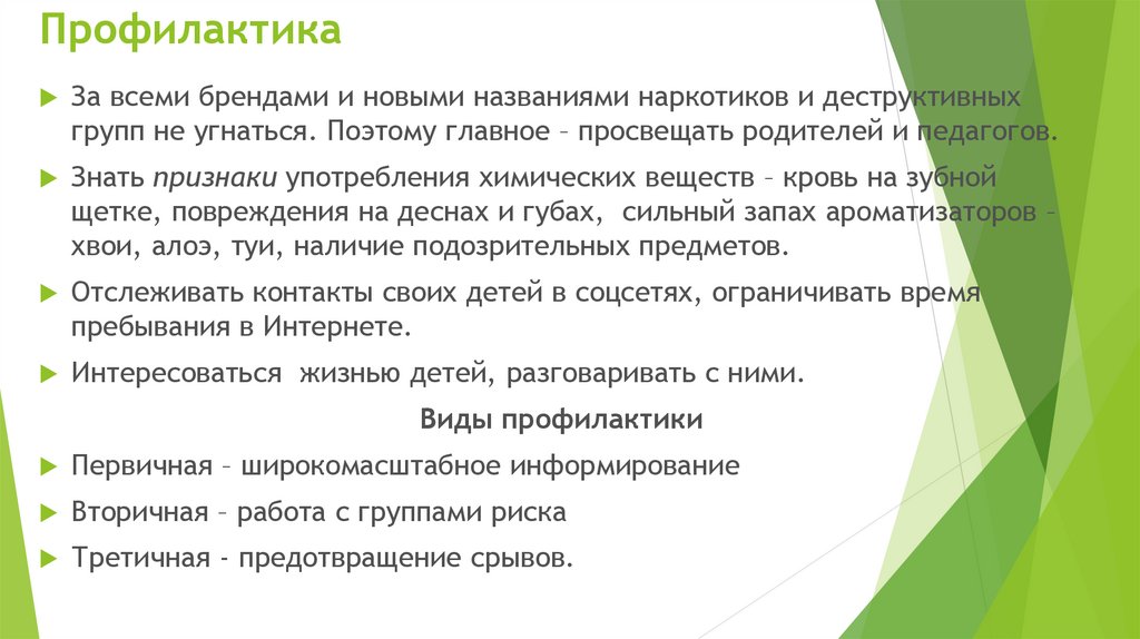 ПрофилактикаЗа всеми брендами и новыми названиями наркотиков и деструктивных
