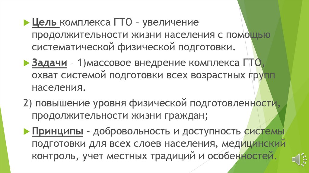– 1)массовое внедрение комплекса ГТО,