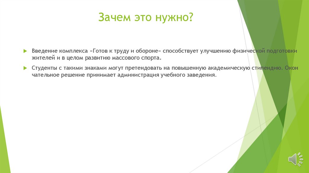 Зачем это нужно?Введение комплекса «Готов к труду и обороне» способствует улучшению физической подготовки