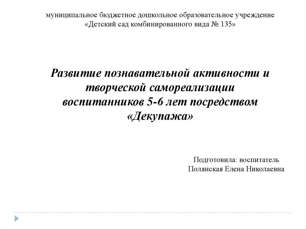 муниципальное бюджетное дошкольное образовательное учреждение«Детский сад комбинированного вида № 135»