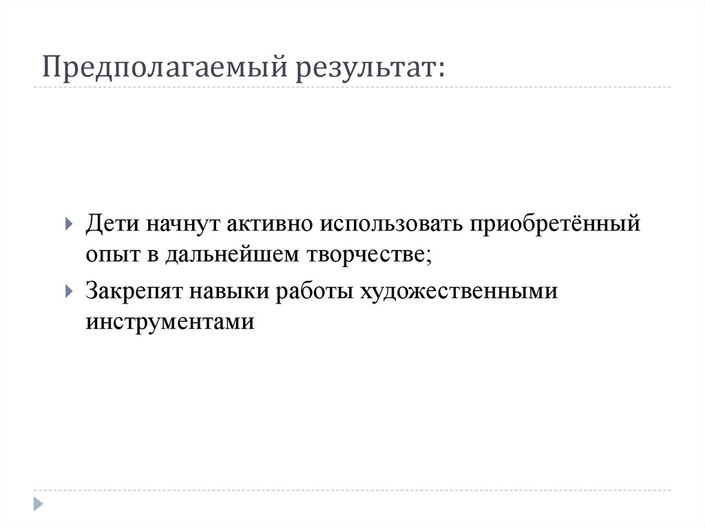 Предполагаемый результат:Дети начнут активно использовать приобретённый