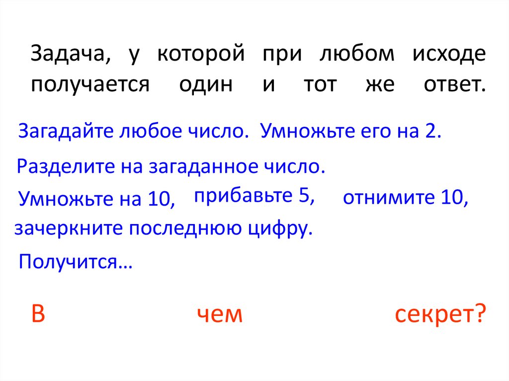 Задача, у которой при любом исходеполучается один и тот же ответ.