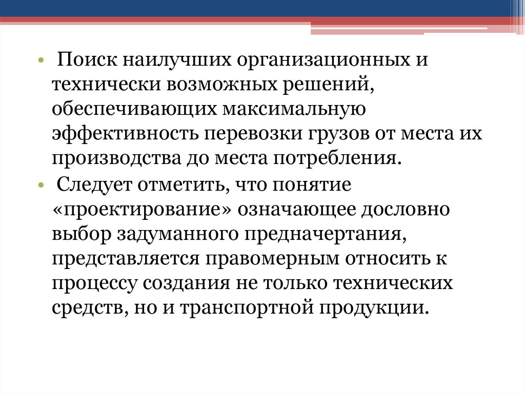 Проектирование перевозочного процесса проектирование оптимального (рационального) перевозочного процесса