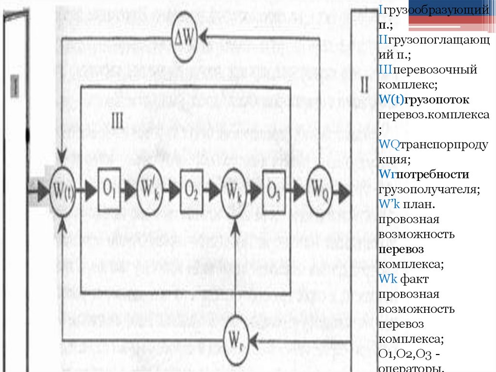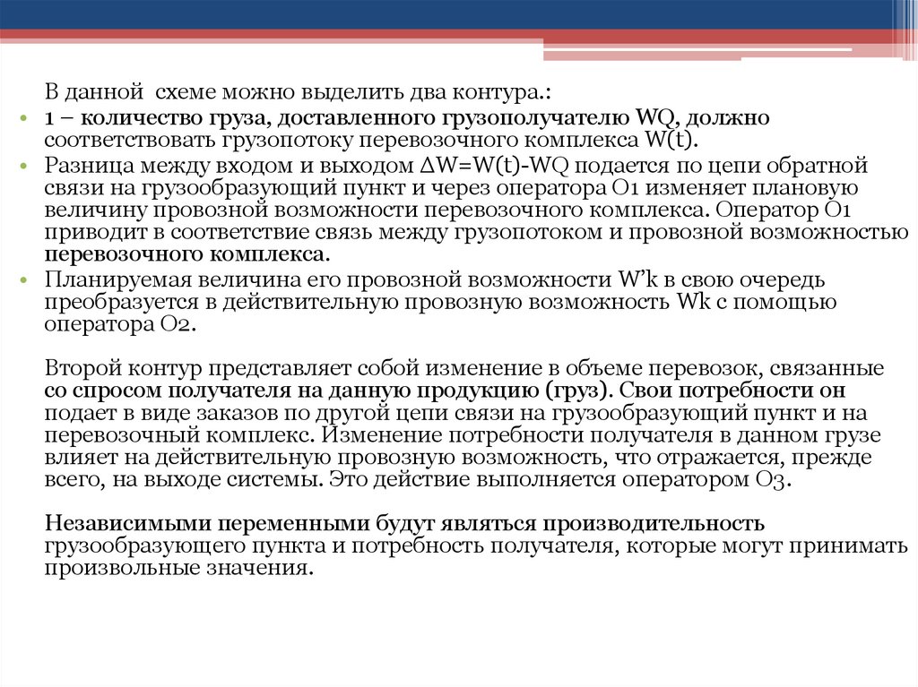 В данной схеме можно выделить два контура.:• 1 – количество груза, доставленного грузополучателю WQ, должно