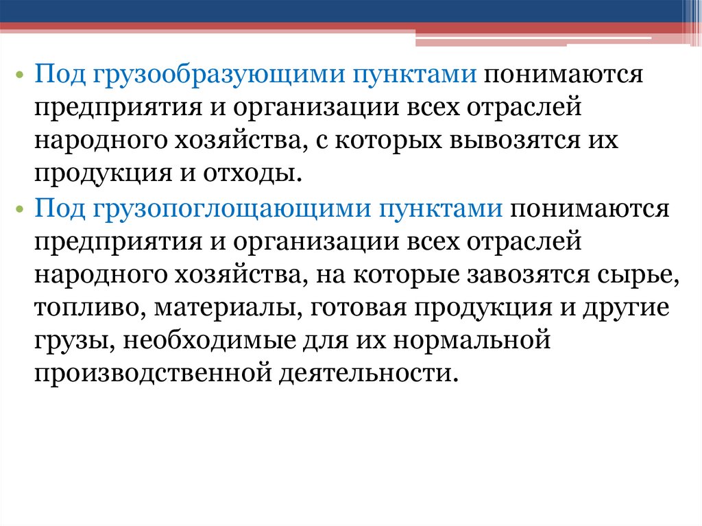• Под грузообразующими пунктами понимаютсяпредприятия и организации всех отраслей