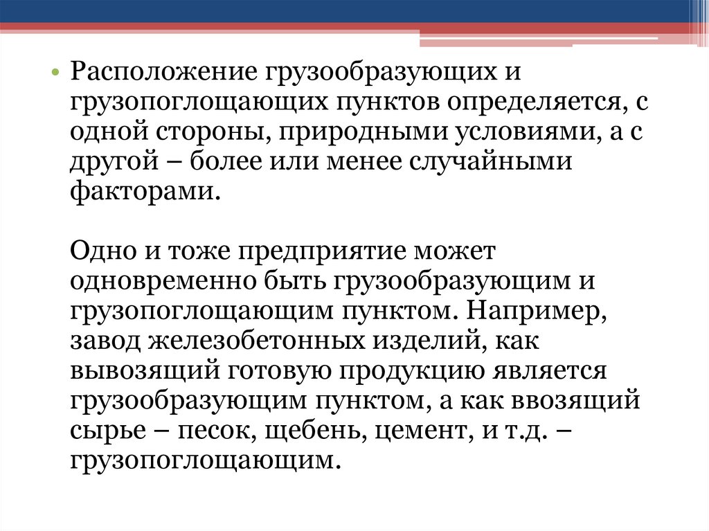 • Расположение грузообразующих игрузопоглощающих пунктов определяется, с