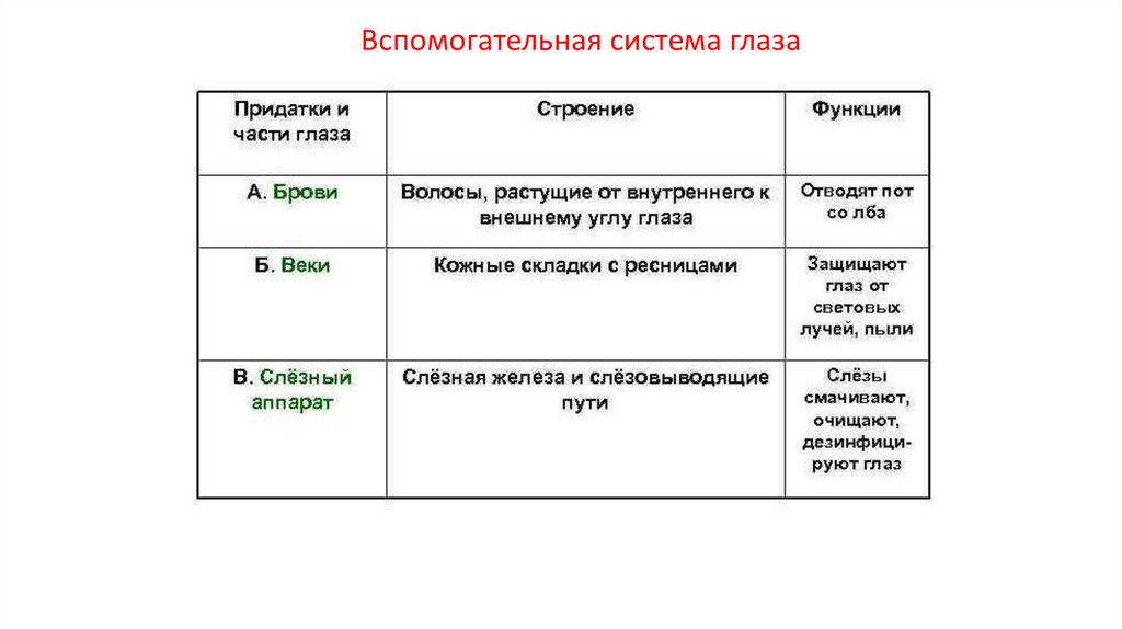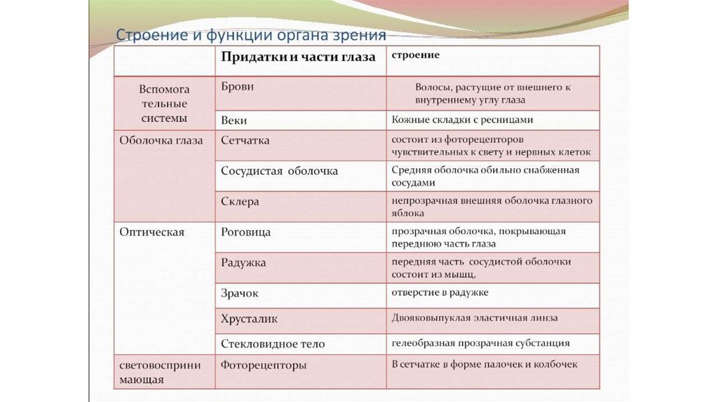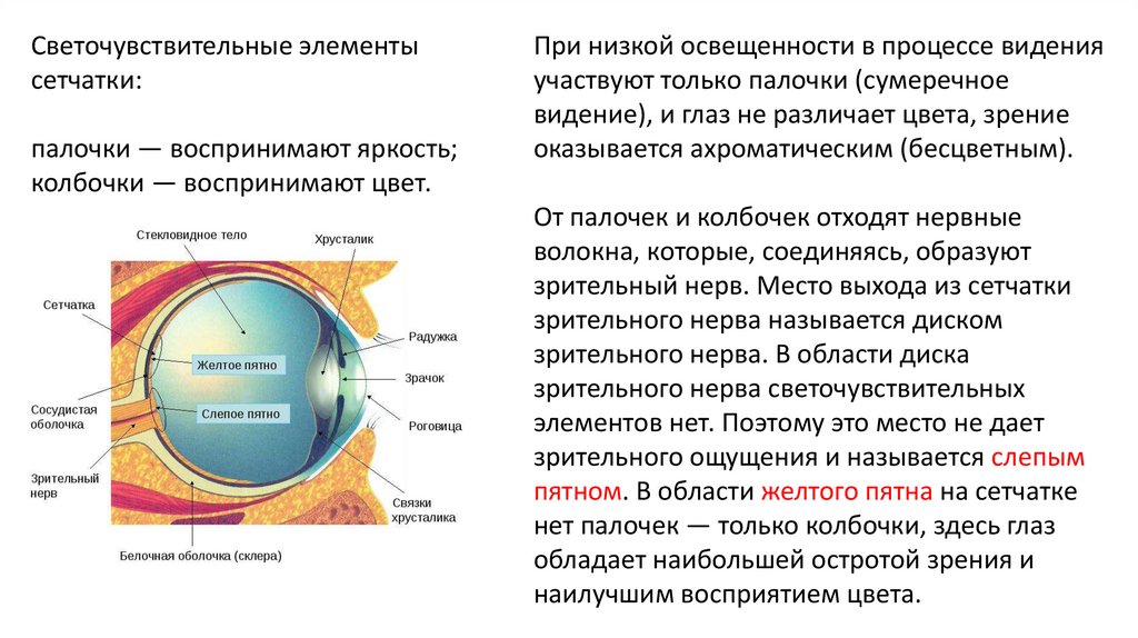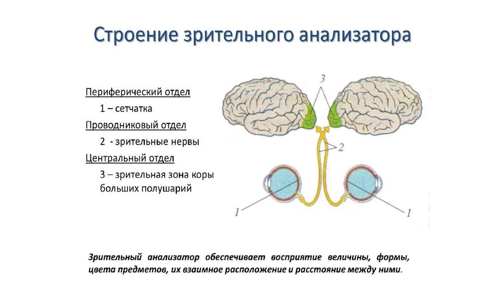 рецепторная часть зрительного анализатора; функция: непосредственное