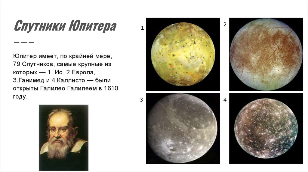 Спутники ЮпитераЮпитер имеет, по крайней мере,