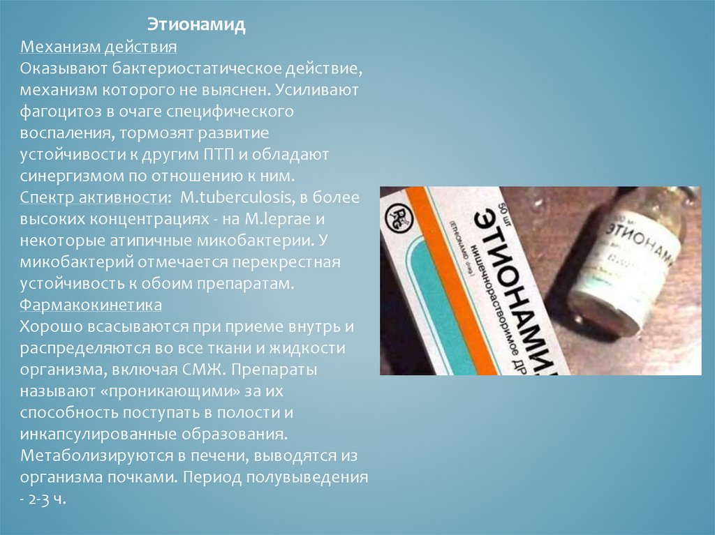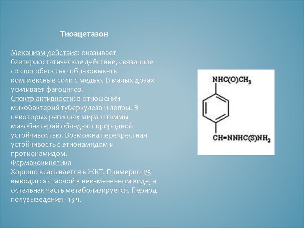 Спектр: Mycobacterium tuberculosis, грамположительные и грамотрицательные