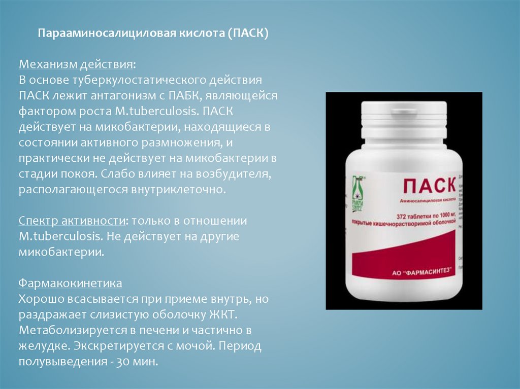 Парааминосалициловая кислота (ПАСК)Механизм действия: