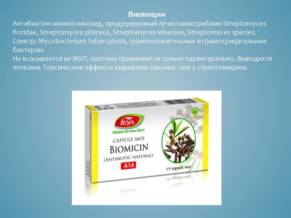 ВиомицинАнтибиотик-аминогликозид, продуцируемый лучистыми грибами Streptomyces