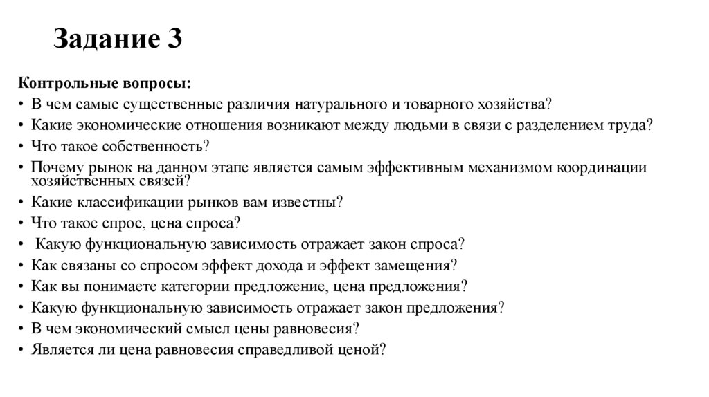 Рыночная система. Основы теории спроса и предложения. Практическое занятие 3
