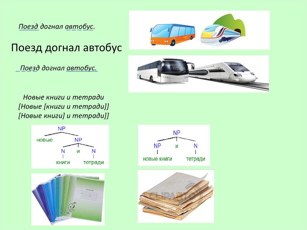 Поезд догнал автобус.