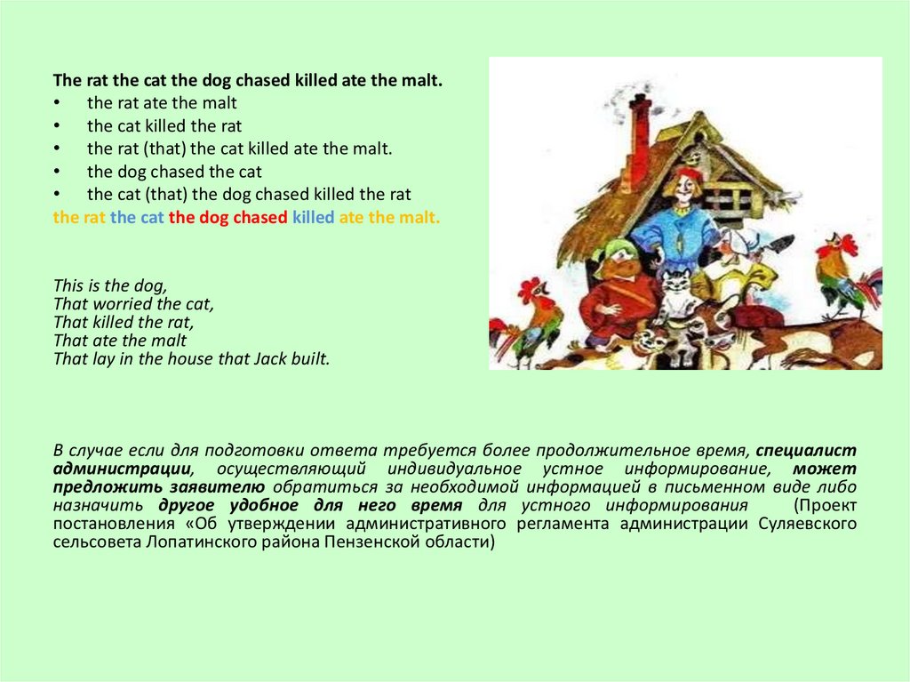 the rat the cat the dog chased killed ate the malt.