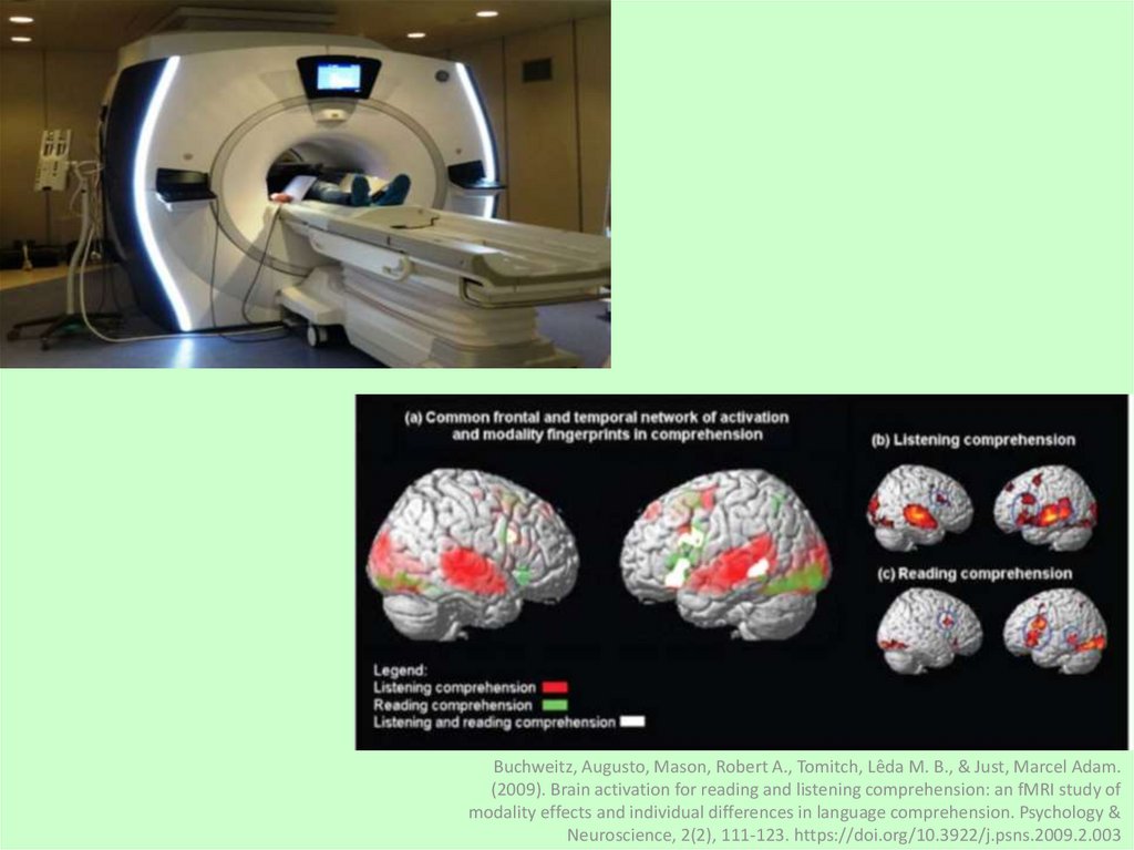 Buchweitz, Augusto, Mason, Robert A., Tomitch, Lêda M. B., & Just, Marcel Adam.(2009). Brain activation for reading and listening comprehension: an fMRI study of