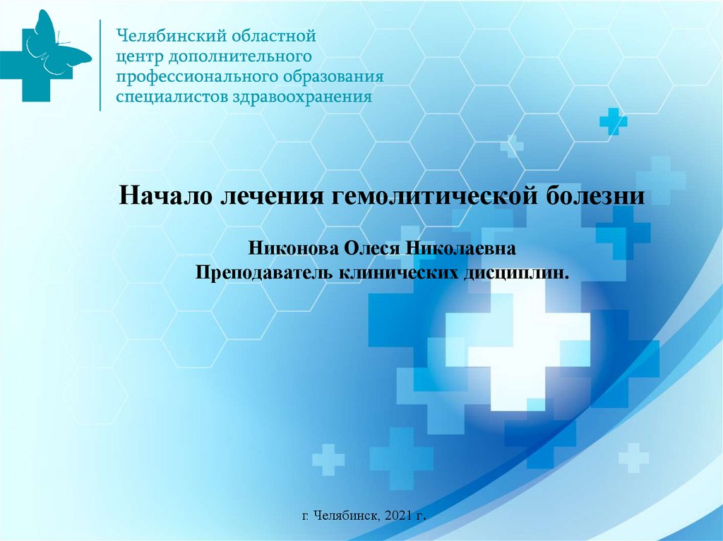Начало лечения гемолитической болезниНиконова Олеся Николаевна
