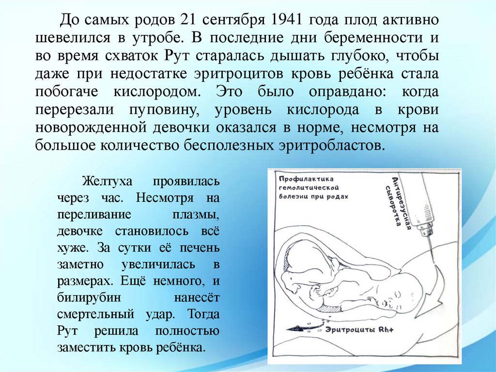 До самых родов 21 сентября 1941 года плод активношевелился в утробе. В последние дни беременности и