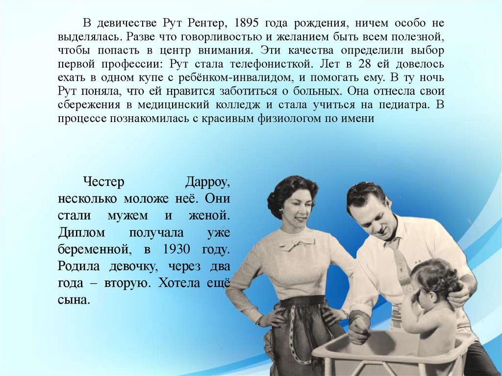 В девичестве Рут Рентер, 1895 года рождения, ничем особо невыделялась. Разве что говорливостью и желанием быть всем полезной,