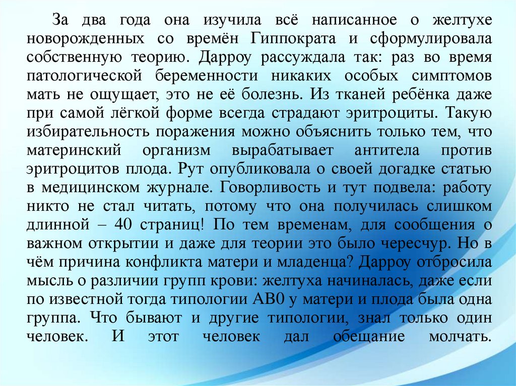 За два года она изучила всё написанное о желтухеноворожденных со времён Гиппократа и сформулировала