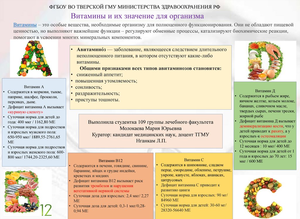 ФГБОУ ВО ТВЕРСКОЙ ГМУ МИНИСТЕРСТВА ЗДРАВООХРАНЕНИЯ РФВитамины и их значение для организма