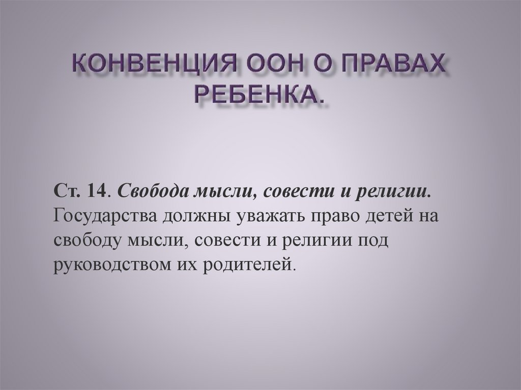 Ст. 14. Свобода мысли, совести и религии.Государства должны уважать право детей на