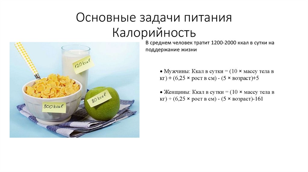 Основные задачи питанияКалорийность