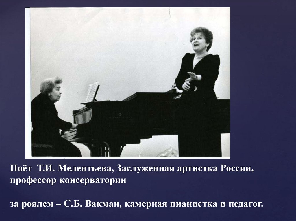 Поёт Т.И. Мелентьева, Заслуженная артистка России,профессор консерватории