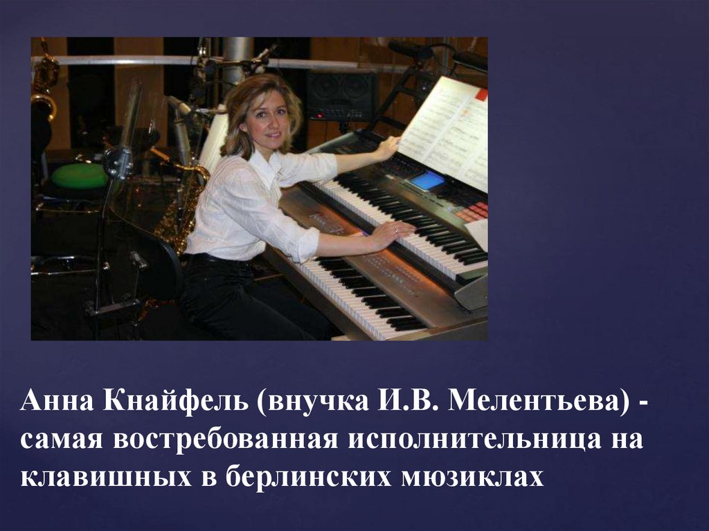 Анна Кнайфель (внучка И.В. Мелентьева) самая востребованная исполнительница наклавишных в берлинских мюзиклах