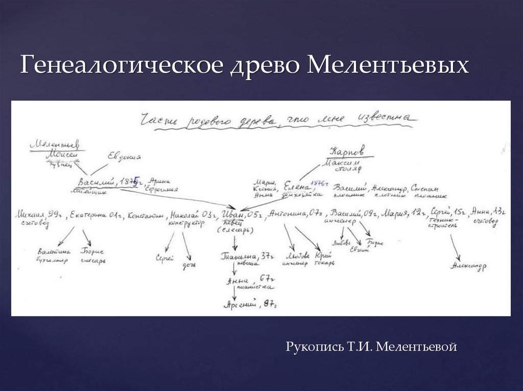 Генеалогическое древо МелентьевыхРукопись Т.И. Мелентьевой