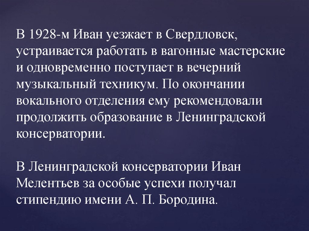 В Ленинградской консерватории Иван