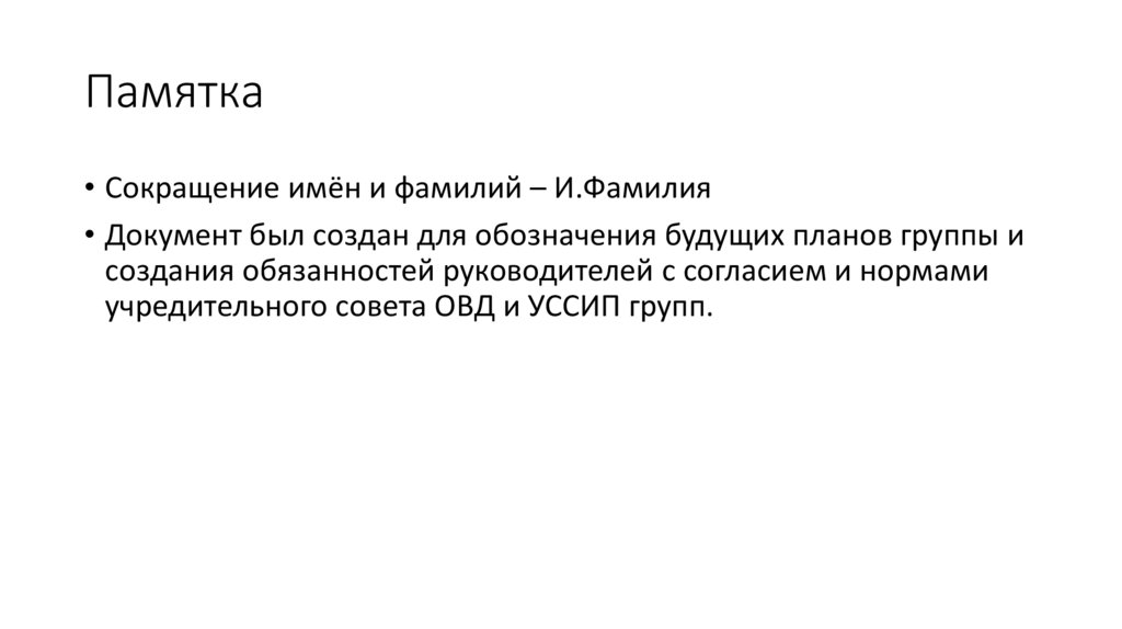 Памятка• Сокращение имён и фамилий – И.Фамилия