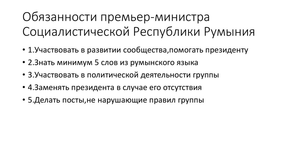 Обязанности премьер-министраСоциалистической Республики Румыния